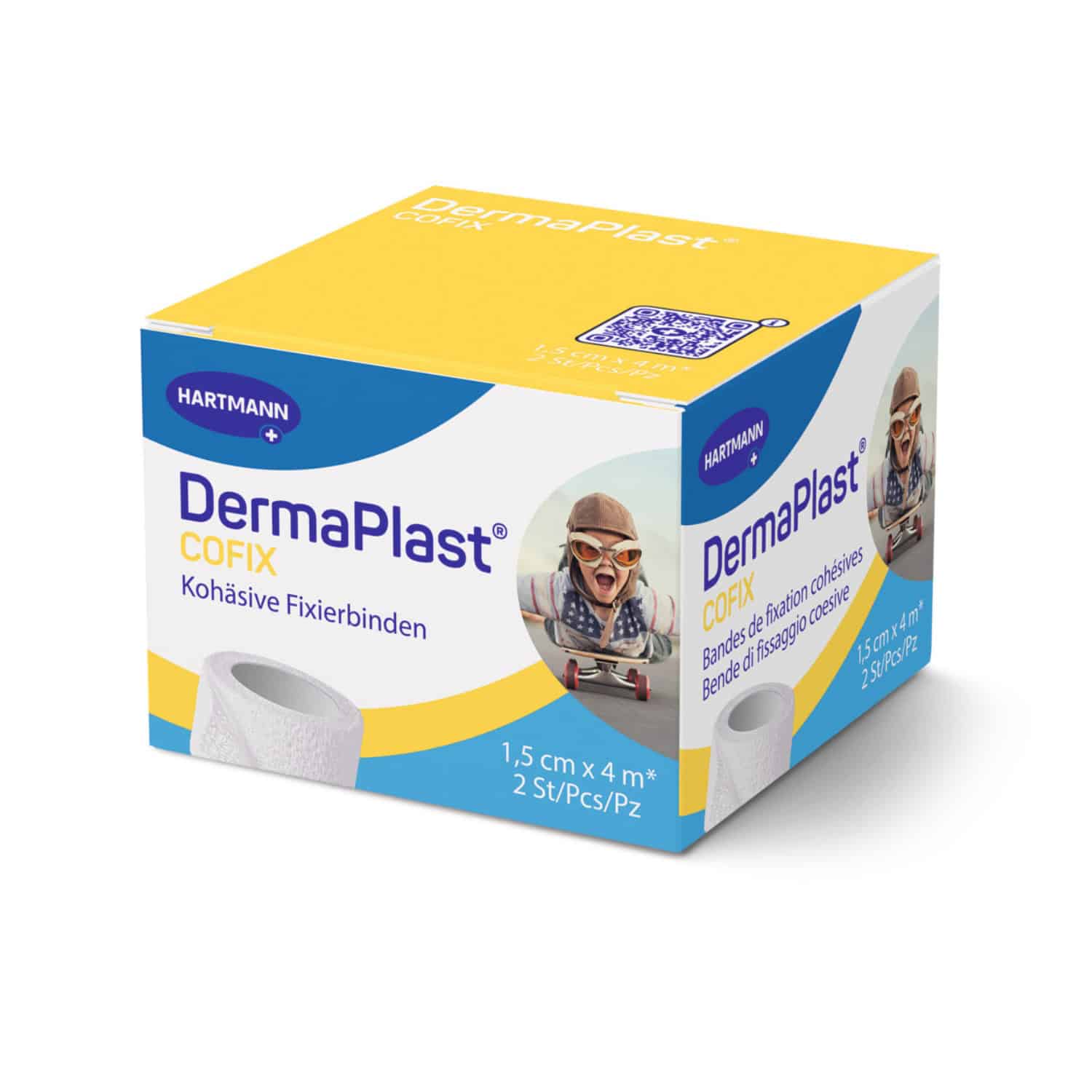 Das DermaPlast® CoFix haftet auf sich selbst und nicht auf der Haut. Die Fixierbinde ist rutschfest, wasserabweisend und luftdurchlässig.